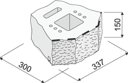 Pohledová strana prvku je štípaná (povrch připomíná hrubý kámen se znatelnou texturou kameniva). Technikou omílání štípaných tvarovek vzniká povrchová úprava GRIND, všechny hrany mají nepravidelný tvar, stěny z tvarovek připomínají starodávné kamenné zdi. Prvek má plastickou čelní plochu a rozměry 337 x 150 mm. Díky menšímu rozměru oproti verzi GEOSTONE - BENT získává opěrná zeď jemnější výraz.