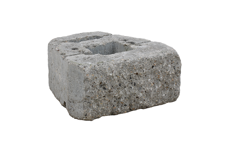Pohledová strana je štípaná (povrch připomíná hrubý kámen se znatelnou texturou kameniva). Technikou omílání štípaných tvarovek vzniká povrchová úprava GRIND, všechny hrany mají nepravidelný tvar, stěny z tvarovek připomínají starodávné kamenné zdi. Prvek má plochý čelní líc a rozměry 337 x 150 mm. Díky menšímu rozměru oproti verzi GEOSTONE - FLAT získává opěrná zeď jemnější výraz.