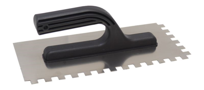 Hladítko na nanášení lepidel pod obklady a dlažby, dále pak k nanášení stěrek, štuků, omítek, tmelů a dalších stavebních hmot.
